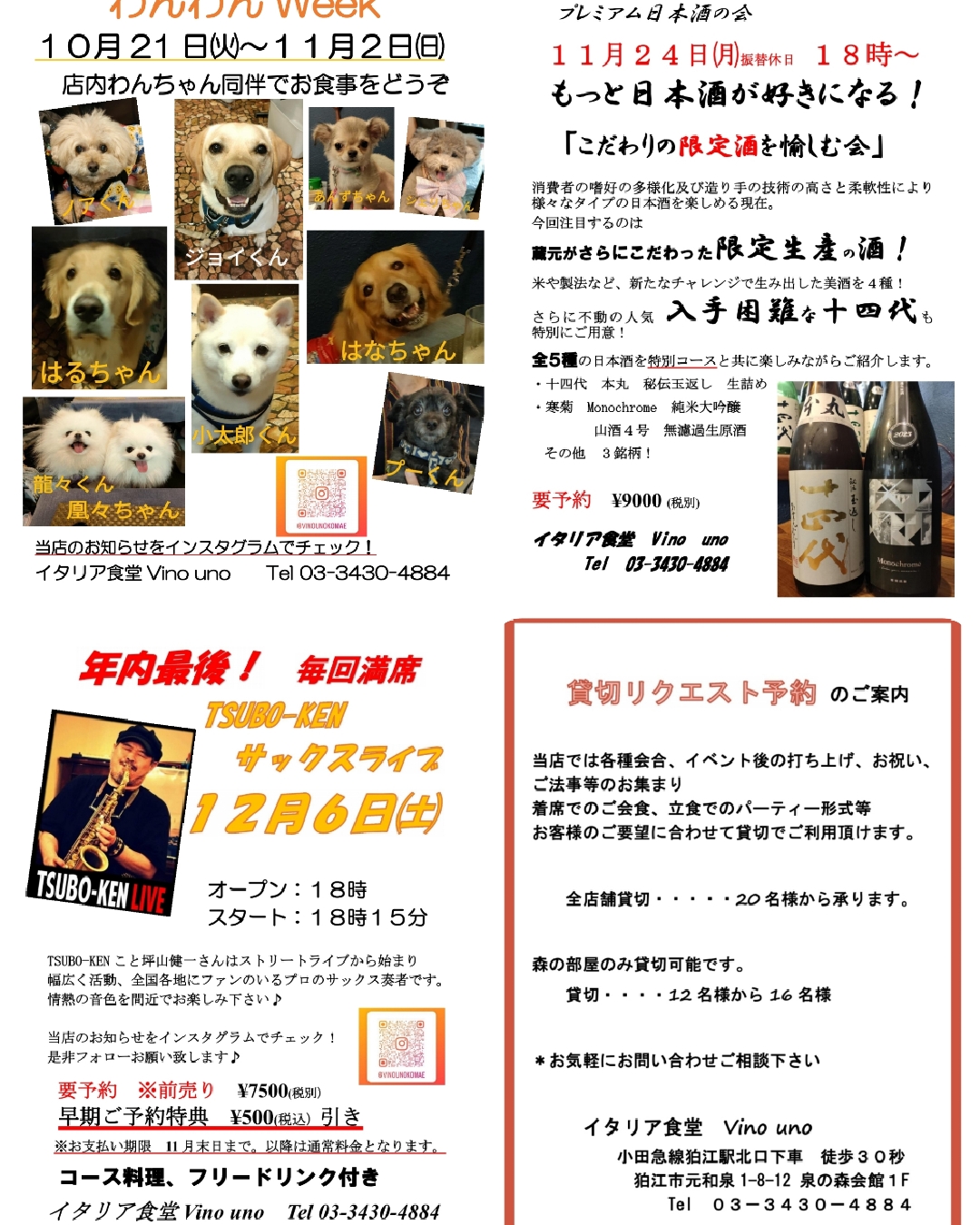 10月21日㈫〜11月3日㈪‼️ 期間中は店内でわんちゃんと一緒にお食事を楽しめます🥂