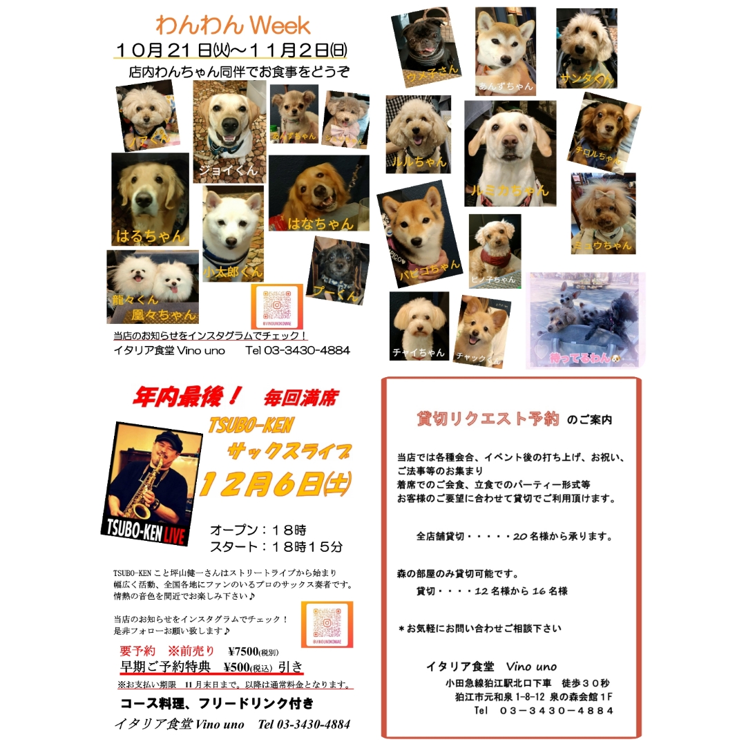 10月21日㈫〜11月2日㈰‼️ 期間中は店内でわんちゃんと一緒にお食事を楽しめます🥂